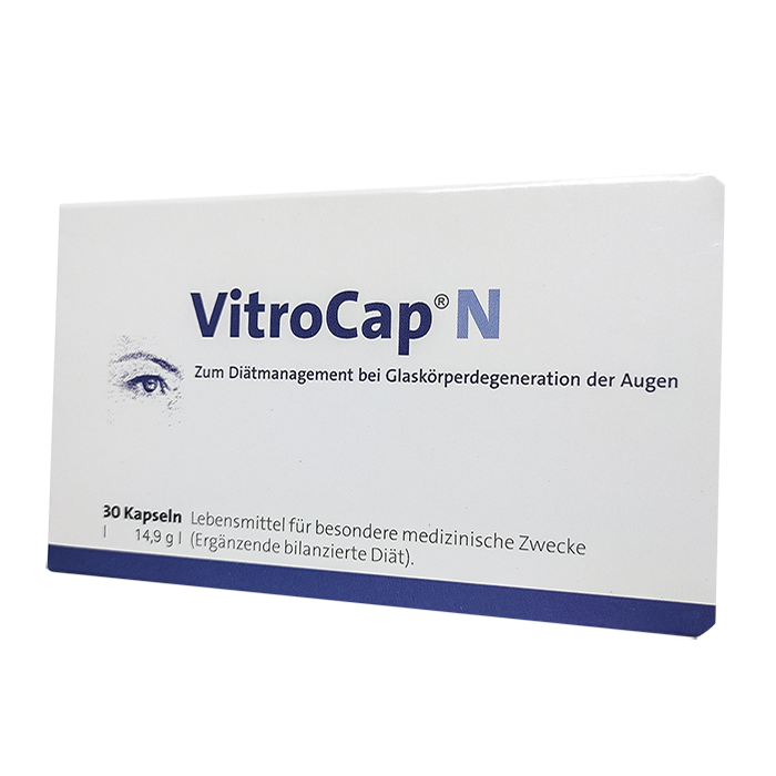 Капсулы для глаз Vitrocap - это пищевая добавка, которая предотвращает деградацию стекловидного тела и способствует регулированию изменений, происходящих в нем в результате дефицита определенных микроэлементов.