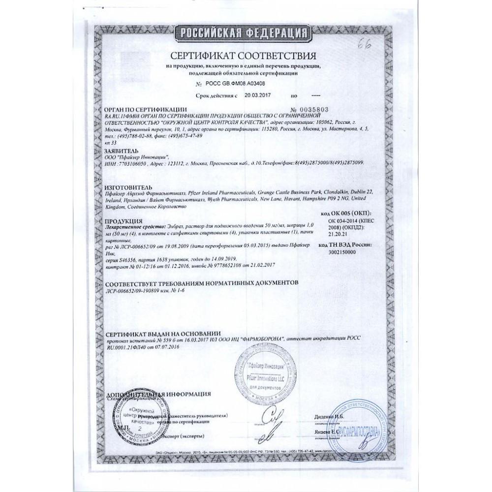 — 1 флакон, содержащий лиофилизат препарата Энбрел