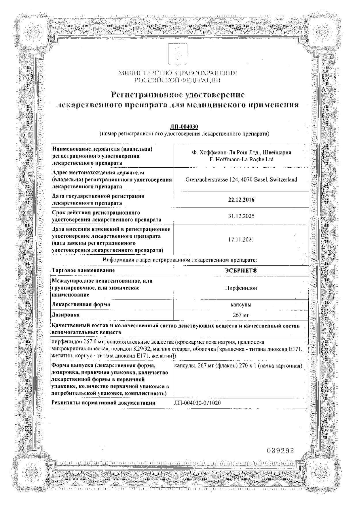 Эсбриет - капсулы 267 мг