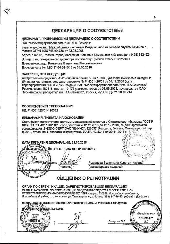 | азатиоприн | 50 мг |