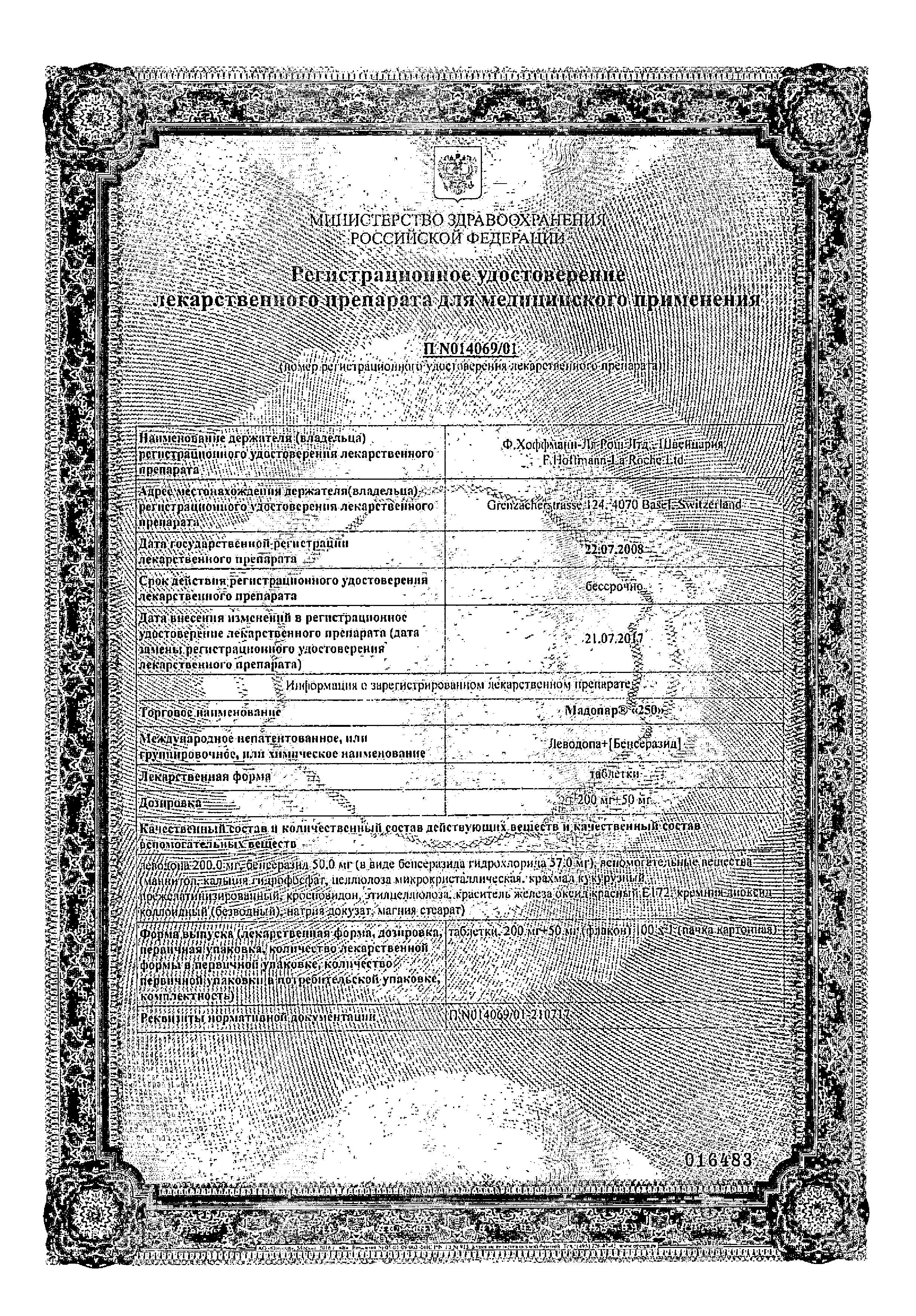 Фото Мадопар 250 (200мг 50мг) табл. аналог Бензиэль №100