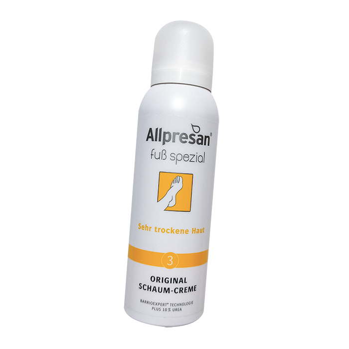 Оригинальный крем для ног в виде пены Allpresan, благодаря своей интенсивно увлажняющей формуле, глубоко увлажняет даже очень сухую кожу ног. Он не только интенсивно увлажняет, но и снижает адгезию бактерий к своей поверхности за счет активного комплекса защиты кожи. Пена разглаживает кожу, делает ее увлажненной и эластичной. Препарат поддерживает естественную защитную функцию кожи и предотвращает образование новых мозолей.