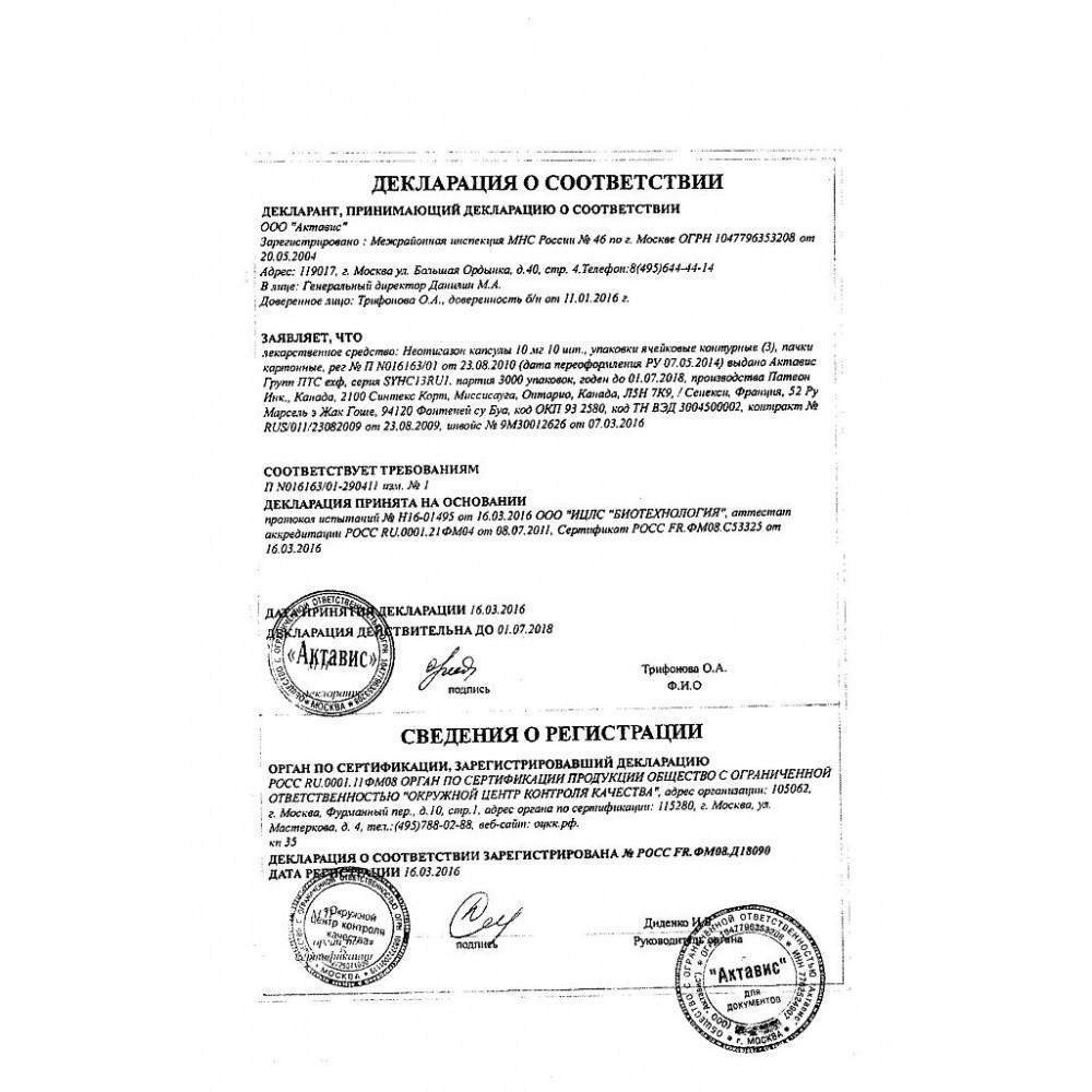 1 капсула Неотигазон 10 мг содержит активное вещество: ацитретин 10 мг (в виде сухого спрея, содержащего 25 % активного вещества).