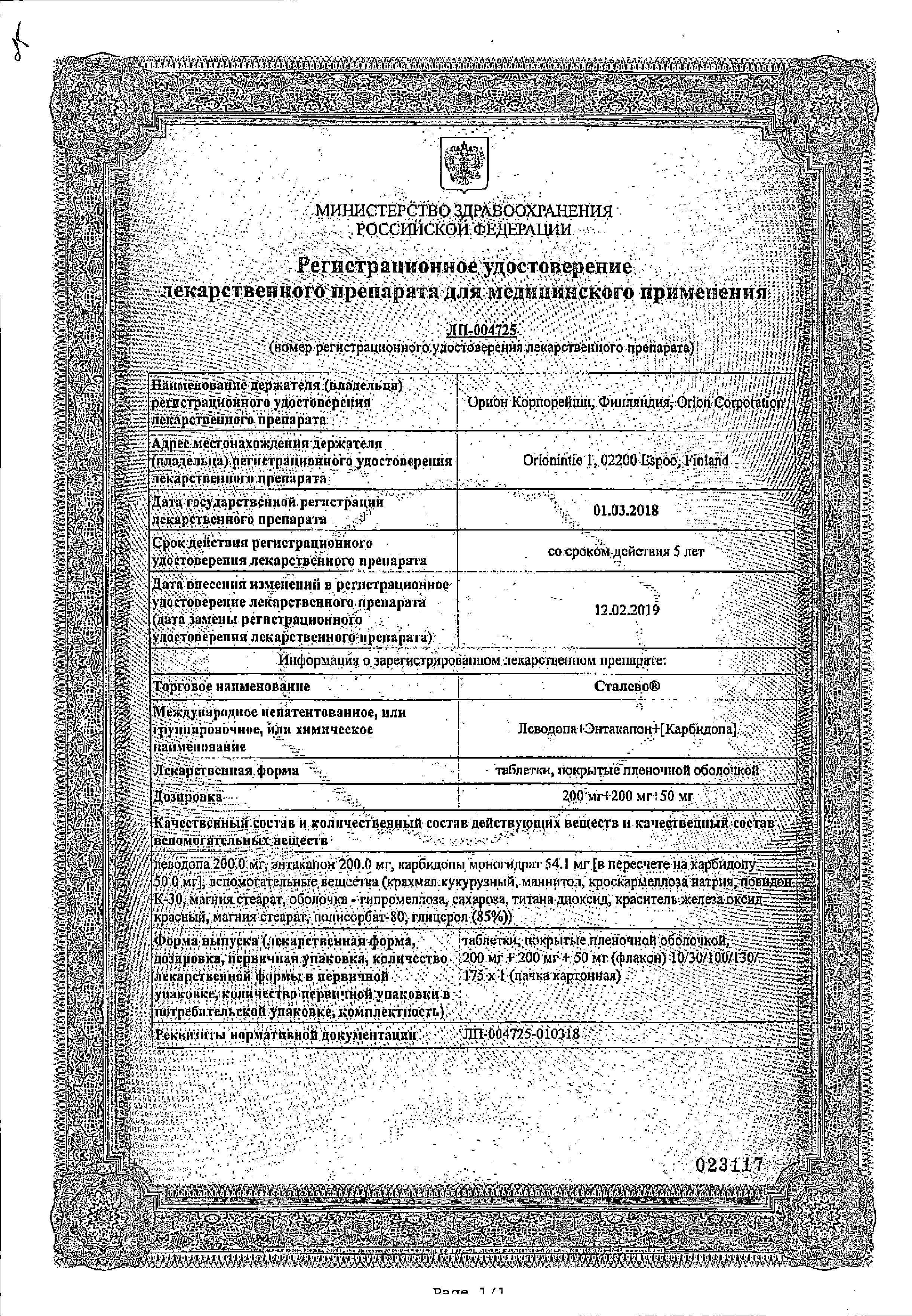 Форма выпуска, упаковка и состав препарата Сталево®