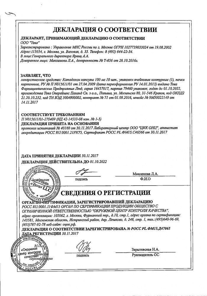 Препарат Катадолон® следует применять, в том случае, если лечение другими обезболивающими препаратами (например, НПВС или опиоидные препараты) противопоказано.