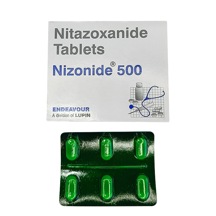 После приема внутрь исходный нитазоксанид в плазме практически не определяется, поскольку быстро превращается в активный метаболит тизоксанид, а затем — в его глюкуронид. При приеме таблетки с пищей максимальная концентрация активных метаболитов достигается примерно через 3–4,5 часа; прием еды заметно повышает системное воздействие. Именно поэтому таблетки рекомендуется принимать с едой.
