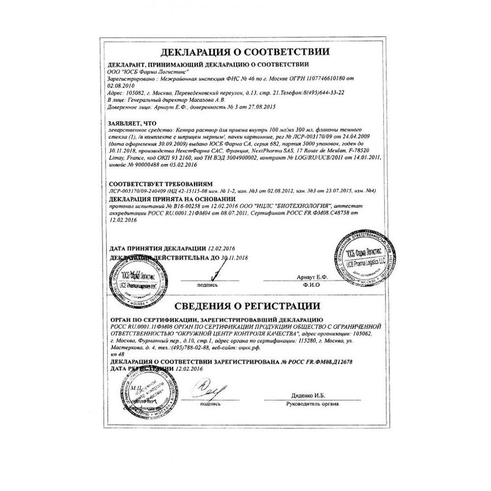 Раствор для приема внутрь содержит мальтитол, поэтому пациентам с нарушением толерантности к фруктозе прием препарата Кеппра® в соответствующей лекарственной форме противопоказан.