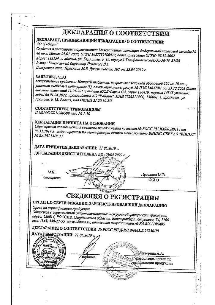 Применение. Таблетки Кеппра 250 мг принимаются дважды в день независимо от приема пищи. Режим дозирования и длительность применения устанавливается индивидуально в зависимости от степени тяжести заболевания. Стандартная дозировка. Начальная лечебная доза составляет 500 мг дважды в сутки, но некоторые специалисты рекомендуют начинать с 250 мг дважды в день. Суточная доза не должна превышать 3000 мг.
