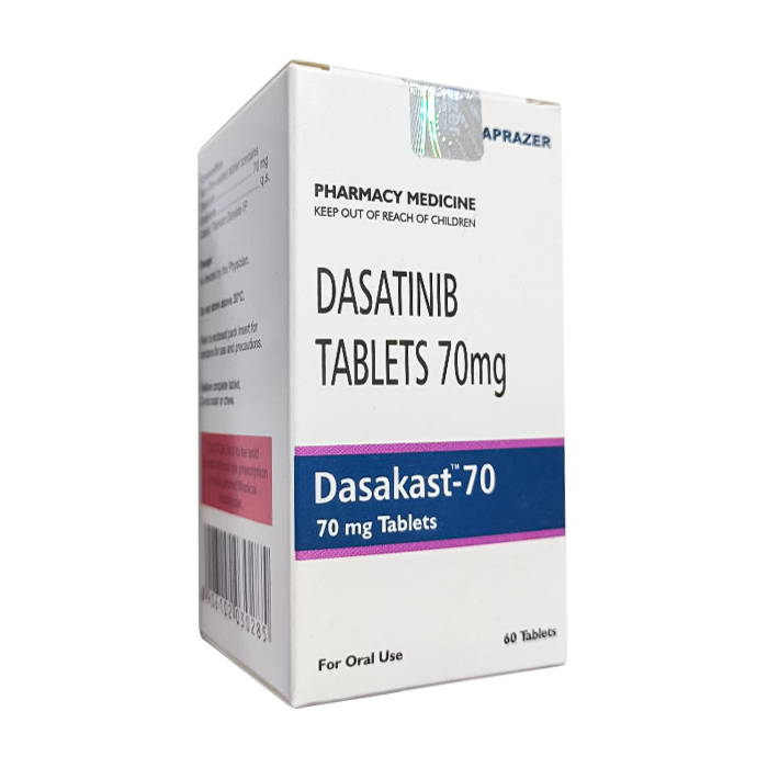 Дазатиниб (Dasakast) — активное вещество из группы ингибиторов киназ для лечения хронического миелоидного лейкоза и острого лимфатического лейкоза. Эффекты основаны на ингибировании тирозинкиназы BCR-ABL, которая играет центральную роль в развитии заболевания. Дазатиниб также частично активен у пациентов с резистентностью или непереносимостью иматиниба.