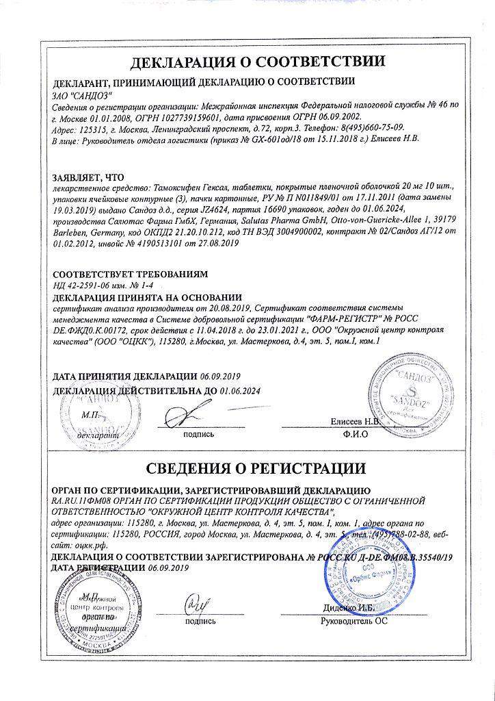 Сертификаты Тамоксифен