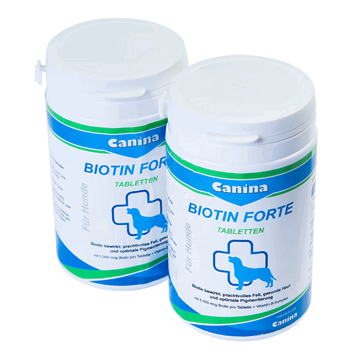 Биотин также дают беременным сукам. Рекомендованный курс терапии составляет 6 недель, после чего прием по показаниям ветеринара может быть продолжен (в этом случае дозу обычно уменьшают вдвое).