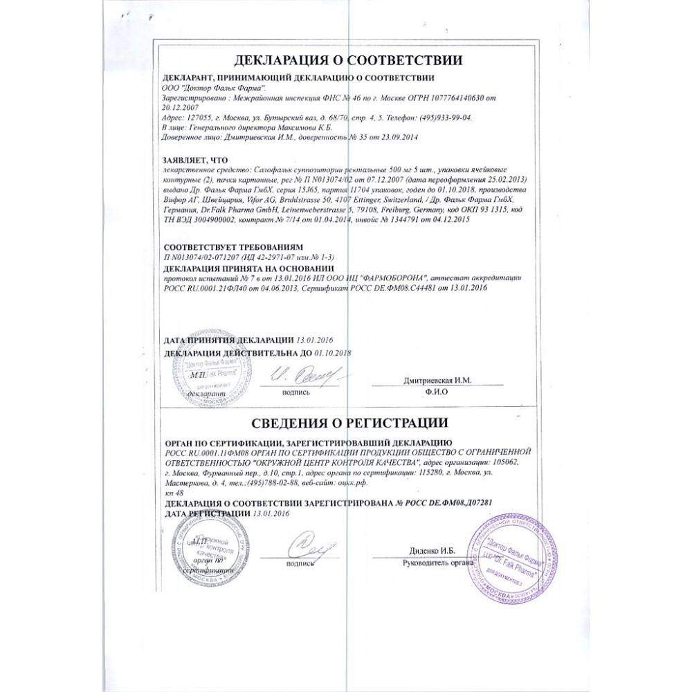 Применение. В острой фазе заболевания Салофальк назначают ректально по 500 мг 3 раза в сутки или по 1 суппозиторию 1000 мг 1–2 раза в сутки. В особенно тяжелых случаях дозу удваивают. При проведении длительной терапии назначают суппозитории Salofalk ректально по 250 мг 3 раза в сутки. Острые симптомы устраняются через 8–12 недель лечения.